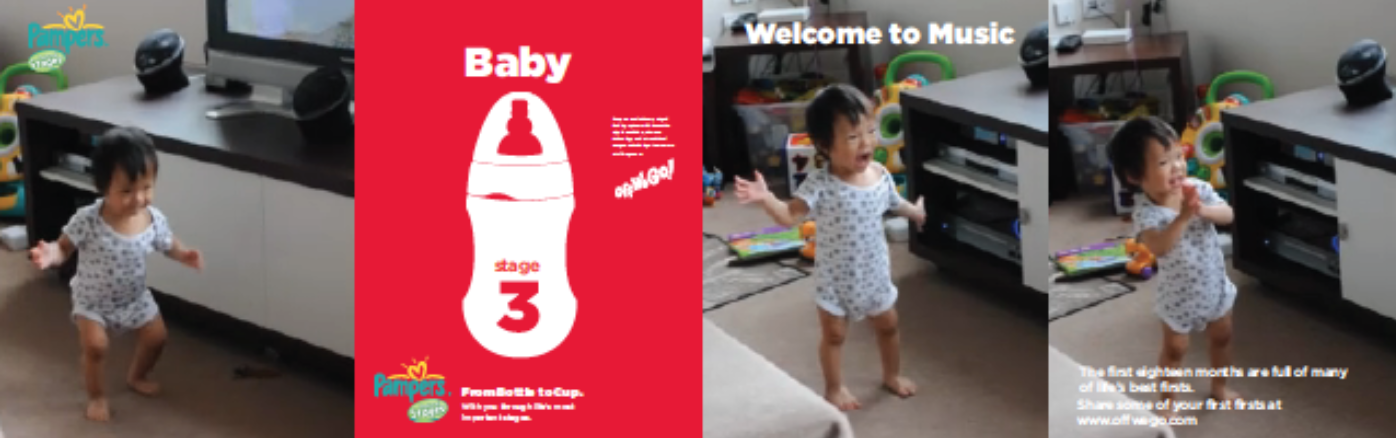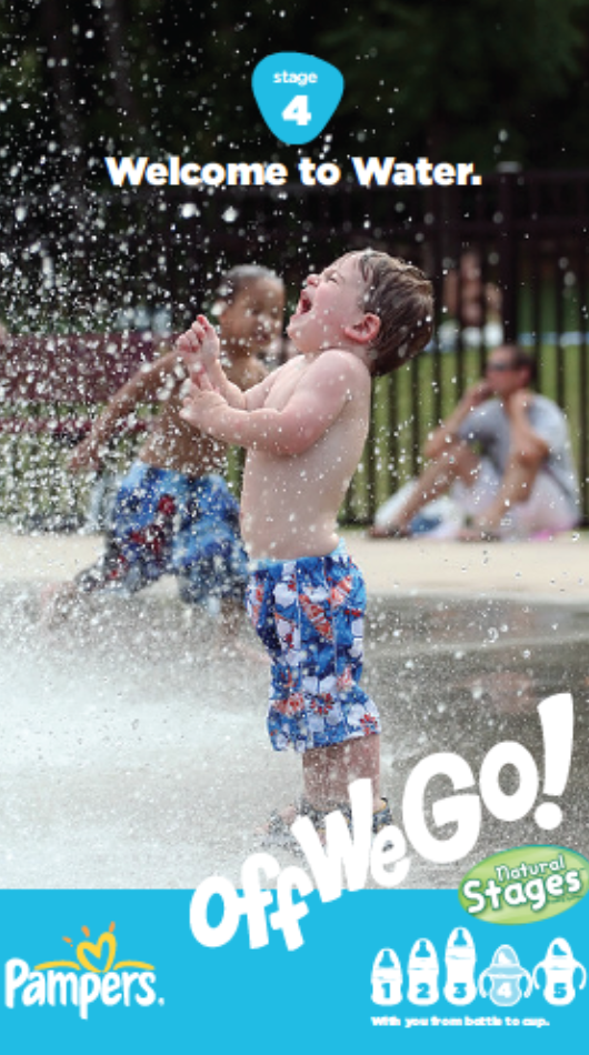 Pampers On The Go! was a system that transitioned a child from bottle to big kid cup. Using “Welcome to _____” as a format, each stage celebrated the child’s new stages of ability.
